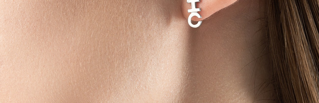 Серебряные серьги-пуссеты LETTERE из коллекции ОНО STYLE в виде фирменного логотипа – простое украшение в стиле современный минимализм. Без камней и вставок. Имеют декоративное и надежное защитное покрытие белым родием. Такое же покрытие используется в изделиях из белого золота 585 пробы. Родий – драгоценный металл платиновой группы и, нанесенный на поверхность украшения, позволяет сохранить его первоначальный вид, защищая от механических повреждений и потемнения. Толщина покрытия 10 мкм. Надеваются и застегиваются серьги так же, как серьги-гвоздики. Удобный и компактный силиконовый фиксатор в оправе из родированного ювелирного сплава позволяет просто и надежно зафиксировать украшение на любой мочке уха. Размер застежки 5,5х5 мм. Длина штифта для фиксации застежки 10 мм, диаметр штифта 0,8 мм. Более тонкий штифт, чем у стандартных винтовых застежек (1,2 мм) обеспечивает максимальный комфорт при надевании и ношении. Размер декоративной части 15Х4 мм. Толщина 1,2 мм.